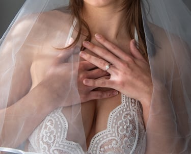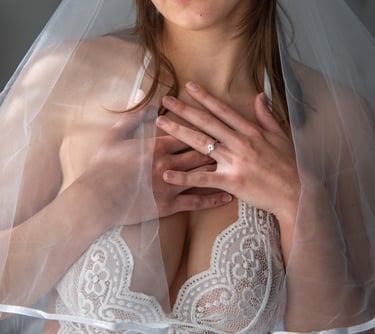 Bridal boudoir photography is all about celebrating you. From luxurious wedding robes to delicate veils and exquisite lingerie, your session is tailored to highlight your feminine allure and individual style.